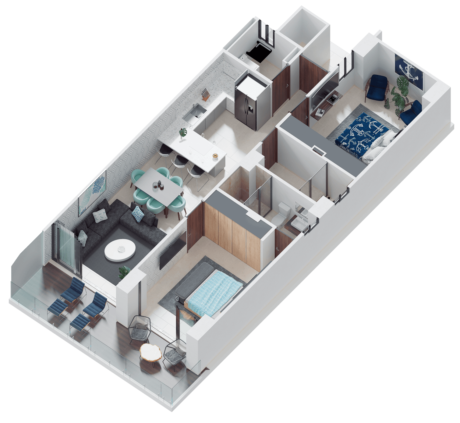 Cocina integral con cubierta de granito | Parrilla vitrocéramica | Campana | Horno eléctrico | Horno de microondas | Mini Split (A/C) | Closets | Calentador eléctrico