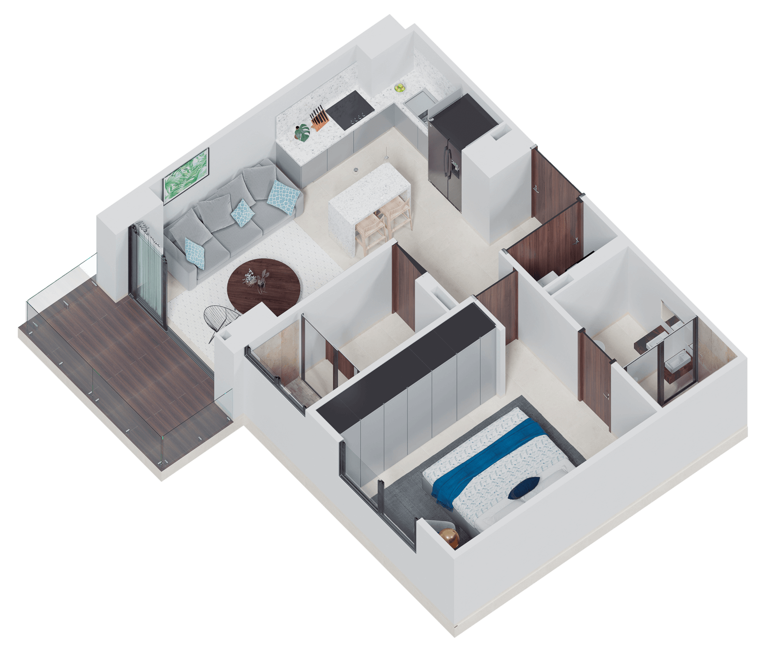 Cocina integral con cubierta de granito | Parrilla vitrocéramica | Campana | Horno eléctrico | Horno de microondas | Mini Split (A/C) | Closets | Calentador eléctrico
